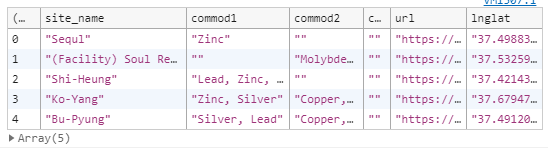 블루닷 인근 땅을 선택해도 자원 array들이 나왔습니다. 게다가 하나가 아닌 여러 개가 나왔습니다. 이는 영역 선택과 상관 없이 화면에 보인 모든 점들에 대한 자원을 표시해 주는 것 같습니다. 한 번 가설을 입증해 봅시다.